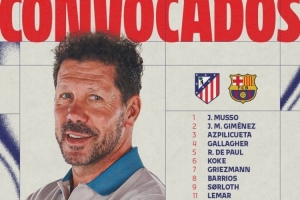 体育资讯4月2日讯 北京时间明天凌晨3点30分,马竞将在国王杯半决赛次回合比赛中主场对阵巴萨,首回合两队4-4战平。马竞公布了此役的球员名单,阿尔瓦雷斯、格列兹曼领衔,科雷亚停赛缺席,